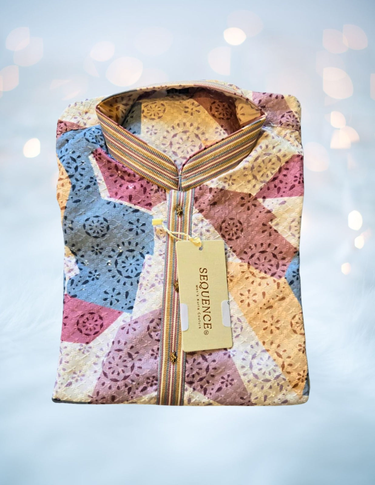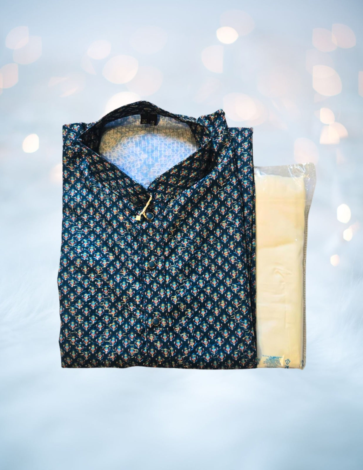 Elevate your ethnic wardrobe with our Silk Jacquard Men’s Kurta, crafted from premium silk for a rich, elegant finish. The intricate jacquard weave adds texture and sophistication, making it perfect for weddings, festive occasions, and cultural celebrations. Designed for a comfortable fit, this kurta pairs effortlessly with churidar, pajama, or dhoti for a complete traditional look.